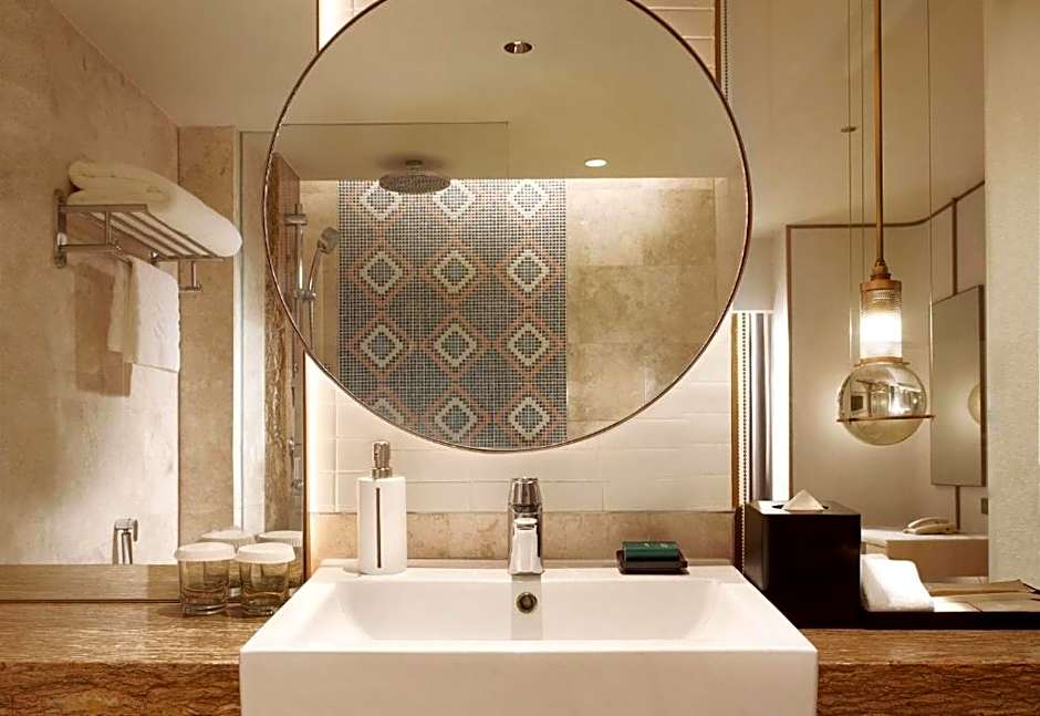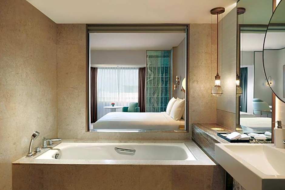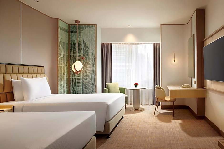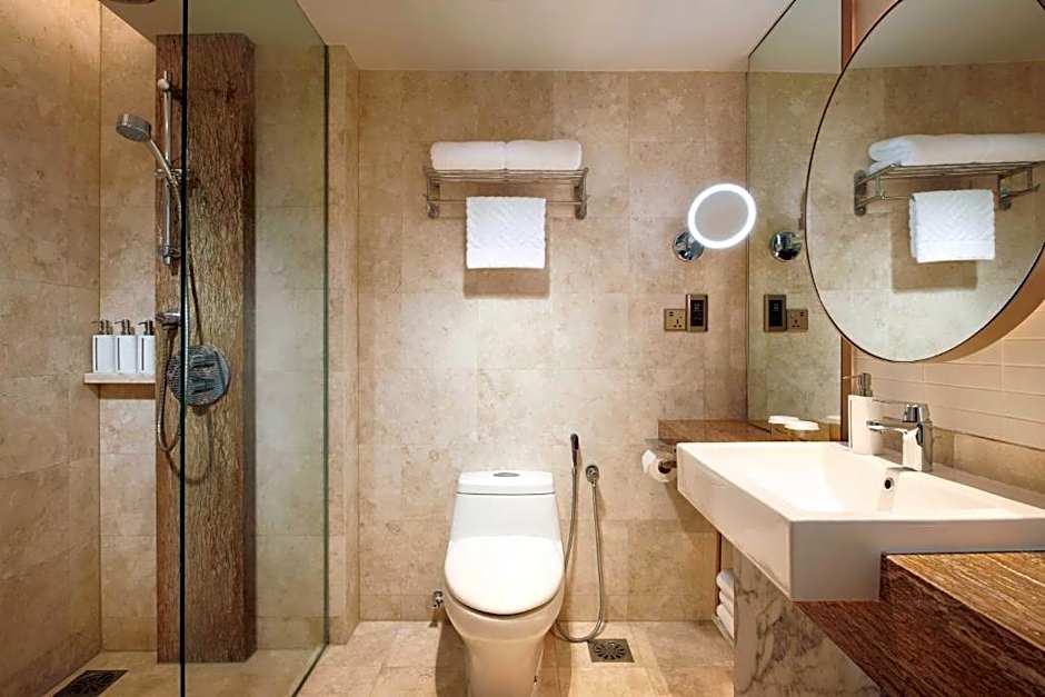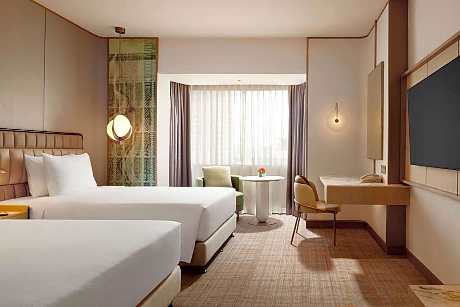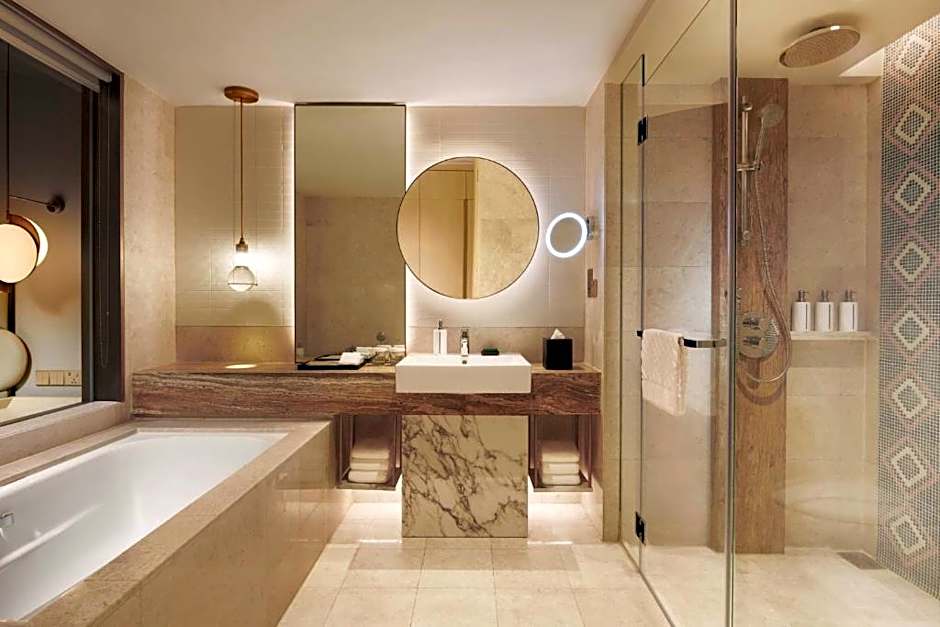 Overlooking the city, this stylish and spacious twin room features executive lounge access. It is fitted with a 65-inch HDTV and bathrobes. The en suite marble bathroom has a separate rain shower, a bath and premium toiletries. Executive lounge access benefits include free WiFi, breakfast and refreshments.