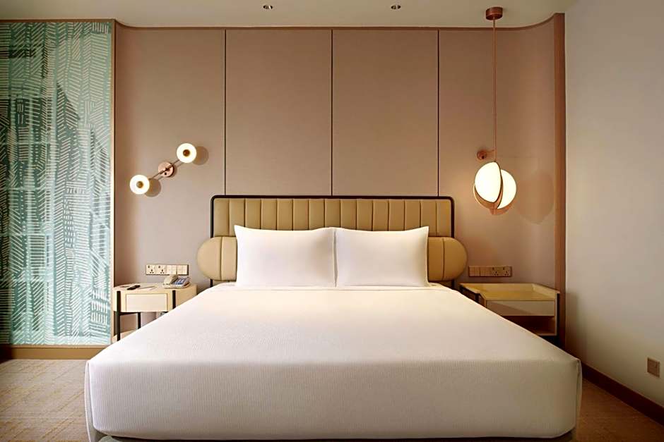 This 27 sqm room is fitted with a king bed and large windows. A 65-inch HDTV and mineral water are also included. The en suite marble bathroom comes with a rain shower and bath amenities.