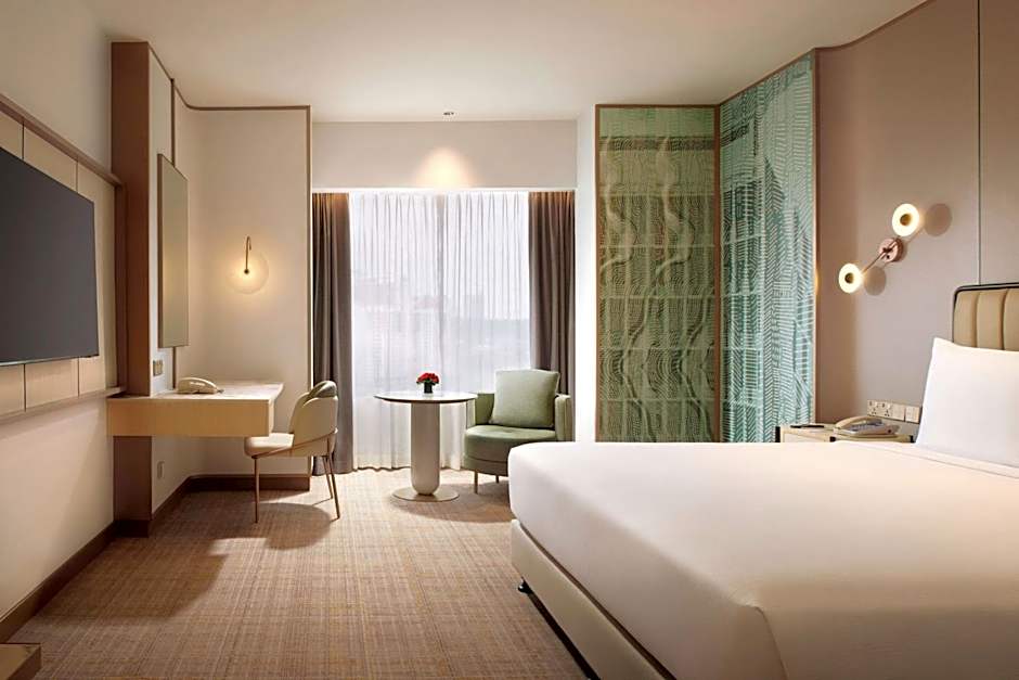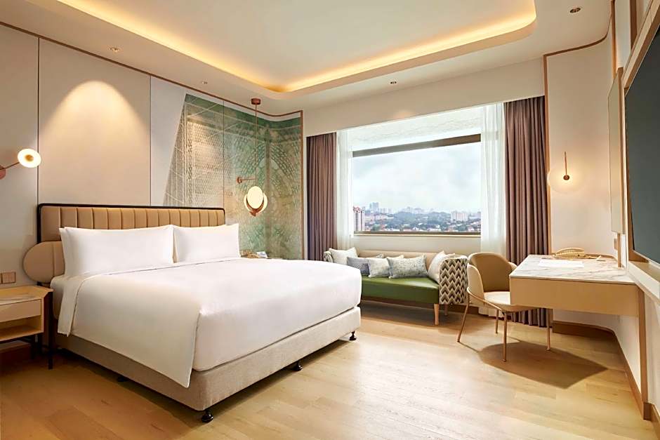 Featuring city view from the large windows, this stylish room is fitted with a king bed and air conditioning. A 65-inch HDTV and mineral water are also included. The en suite marble bathroom comes with a rain shower and bath amenities.